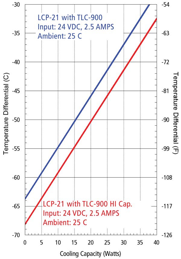 One thermoelectric stacked on top of another with the goal of increasing the maximum temperature differential is a “cascade”. Use these assemblies with the liquid chiller to create 2 and 3 stage cascades. The performance will vary with the degree of insulation, with the amount of the active load and with the ambient temperature.